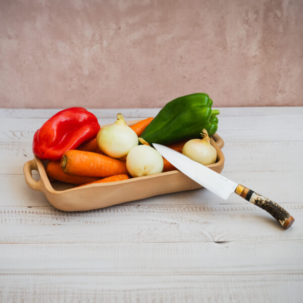 Asadera grande de greda.